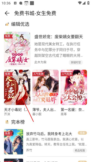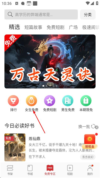 2、在免費專區(qū)頁面,點擊女生免費選項,進入免費書城女生免費頁面。