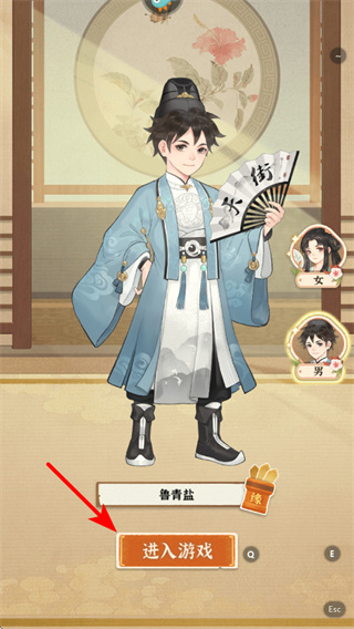 1、在角色選擇界面點擊進入游戲按鈕,可開啟古風經(jīng)營冒險,這是游戲開始的關(guān)鍵操作,準確點擊才能進入游戲世界。