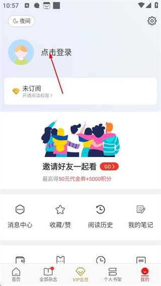 2、在個人頁面,點擊點擊登錄選項,進入登錄注冊頁面。