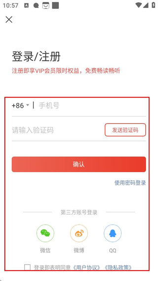3、在登錄注冊頁面,輸入信息,勾選協(xié)議后點擊確認,完成賬號登錄。
