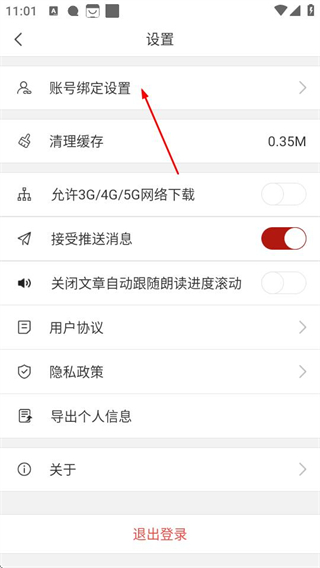 3、在設(shè)置頁(yè)面,點(diǎn)擊賬號(hào)綁定設(shè)置選項(xiàng),進(jìn)入賬號(hào)頁(yè)面。