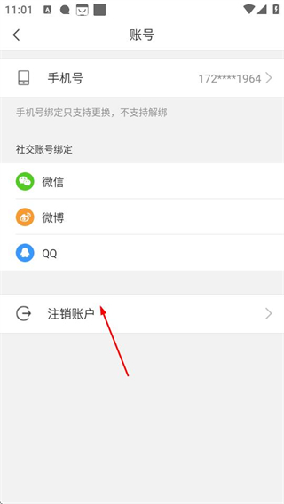 4、在賬號(hào)頁(yè)面,點(diǎn)擊注銷(xiāo)賬戶選項(xiàng),進(jìn)入申請(qǐng)注銷(xiāo)賬戶頁(yè)面。