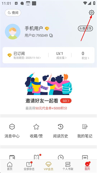 2、在個(gè)人頁(yè)面,點(diǎn)擊右上角設(shè)置圖標(biāo),進(jìn)入設(shè)置頁(yè)面。
