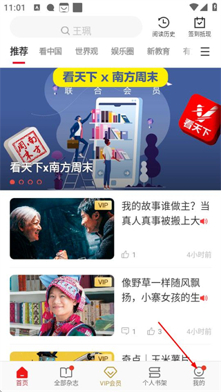 1、在看天下首頁(yè),點(diǎn)擊右下角我的選項(xiàng),進(jìn)入個(gè)人頁(yè)面。