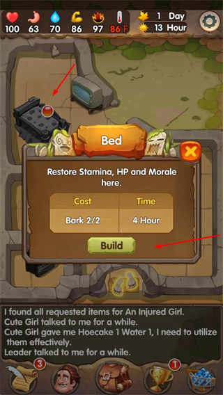 4、消耗資源建造設(shè)施,恢復(fù)體力、生命值和士氣,提升角色生存能力。