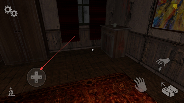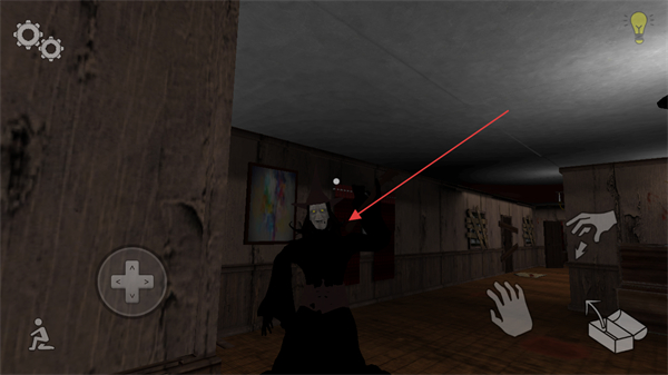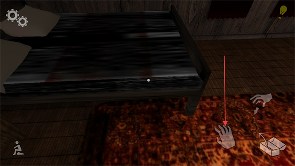 2、滑動(dòng)右側(cè)屏幕空白區(qū)域控制角色視角,將準(zhǔn)心對(duì)準(zhǔn)床鋪等物品點(diǎn)擊右下角的抓取按鈕可以進(jìn)入躲藏。