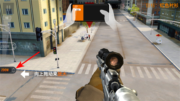 1、游戲中點(diǎn)擊ZOOM按鈕可放大瞄準(zhǔn)鏡,這是精準(zhǔn)定位目標(biāo)的關(guān)鍵操作,放大后能更清晰地觀察目標(biāo)細(xì)節(jié)。