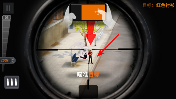 2、通過瞄準(zhǔn)鏡瞄準(zhǔn)目標(biāo)人物,確保十字準(zhǔn)星對(duì)準(zhǔn)目標(biāo),這是有效擊中目標(biāo)的關(guān)鍵操作,注意目標(biāo)的移動(dòng)狀態(tài)。