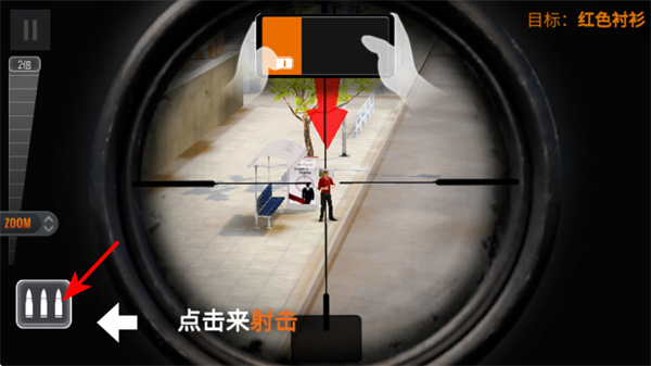 3、瞄準(zhǔn)目標(biāo)后點(diǎn)擊射擊按鈕發(fā)起攻擊,這是完成狙擊任務(wù)的關(guān)鍵操作,射擊時(shí)把握時(shí)機(jī),確保一擊命中目標(biāo)。
