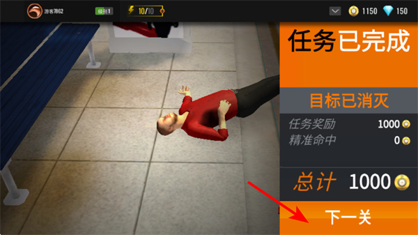 4、任務(wù)完成后點(diǎn)擊下一關(guān)按鈕可進(jìn)入新的狙擊任務(wù),是持續(xù)推進(jìn)游戲進(jìn)程的關(guān)鍵操作,需適應(yīng)新的場(chǎng)景類型。