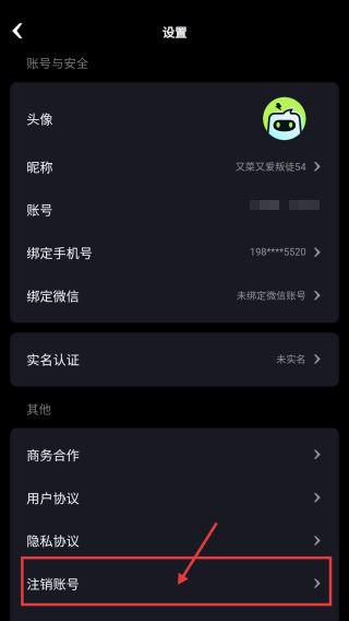 3、在設(shè)置頁(yè)面,點(diǎn)擊注銷(xiāo)賬號(hào)選項(xiàng),進(jìn)入注銷(xiāo)賬號(hào)頁(yè)面。