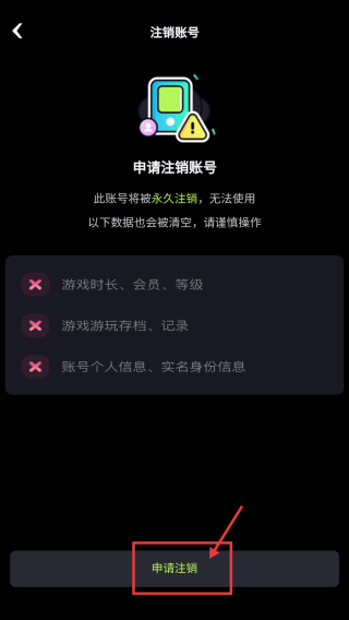 4、在注銷(xiāo)賬號(hào)頁(yè)面,點(diǎn)擊申請(qǐng)注銷(xiāo)按鈕,完成賬號(hào)注銷(xiāo)操作。