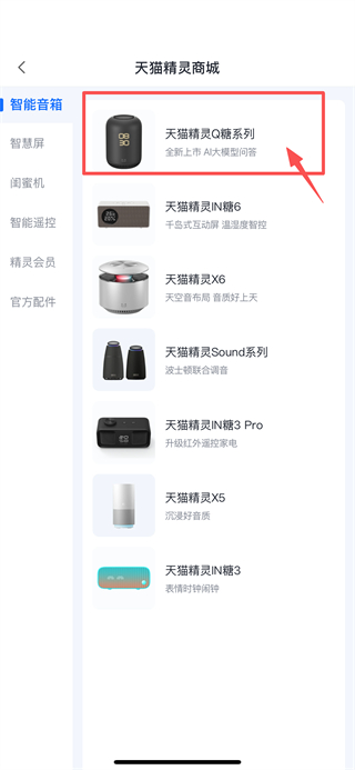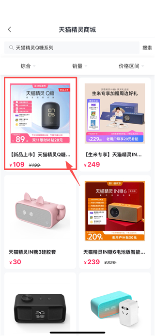 3、在商品分類頁面,選擇天貓精靈Q糖系列,進(jìn)入該系列商品列表頁面。