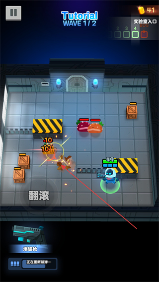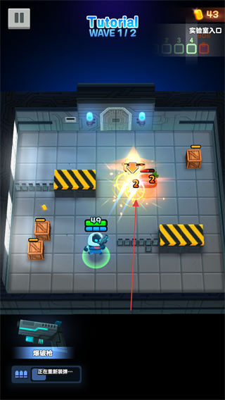 2、操控角色移動(dòng),用爆裂槍自動(dòng)攻擊敵人,清理實(shí)驗(yàn)室中的怪物。