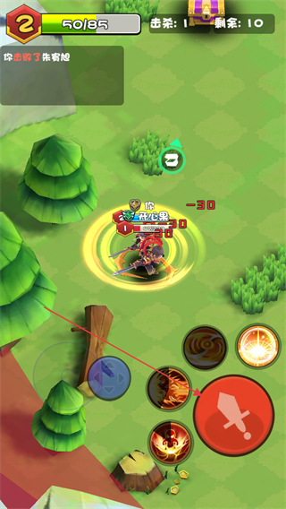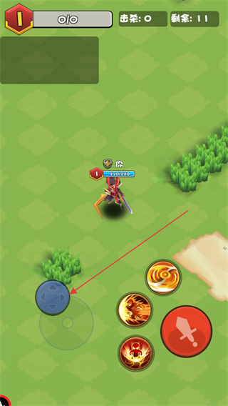 3、利用技能按鈕釋放技能,增強(qiáng)攻擊效果,快速消滅敵人,提升擊殺數(shù)。