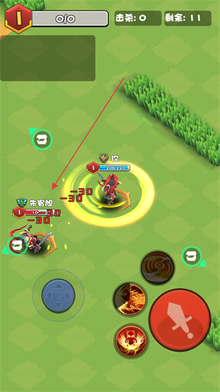 2、遇到敵人時(shí),發(fā)動(dòng)攻擊,造成傷害,消滅敵人可獲得經(jīng)驗(yàn)和金幣。