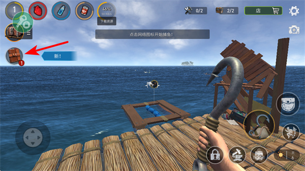 通過鉤子勾取海上漂浮的木桶、箱子、殘骸等獲取資源,也可登上島嶼搜集物資,食物、水和各類道具是生存關(guān)鍵,稀有與木筏升級(jí)材料需靠探索獲取。