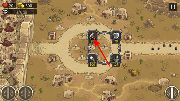 3、在建造界面選擇如70金幣的防御塔,可消耗金幣建造,這是抵御敵人進(jìn)攻關(guān)鍵操作,建造時(shí)優(yōu)先選擇攻擊范圍廣。