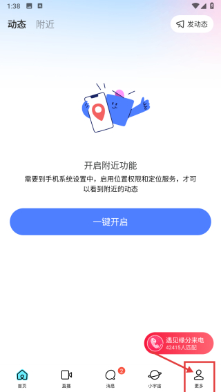 1、打開(kāi)社交類APP,點(diǎn)擊底部更多選項(xiàng),進(jìn)入更多頁(yè)面。