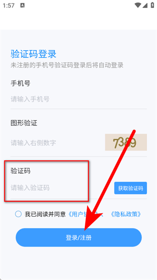 4、輸入驗證碼后,點擊登錄注冊,完成操作。