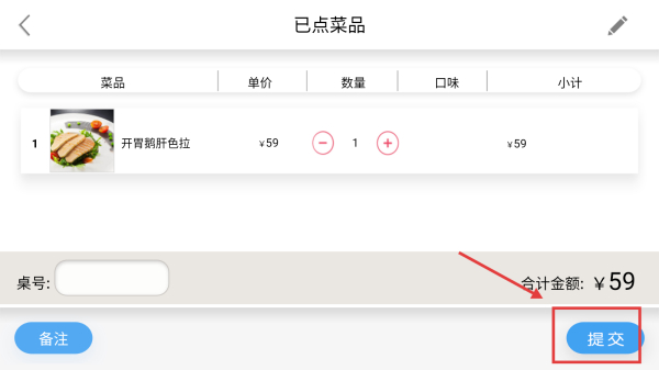4、在已點(diǎn)菜品頁面,確認(rèn)信息后點(diǎn)擊提交按鈕,完成點(diǎn)餐操作。
