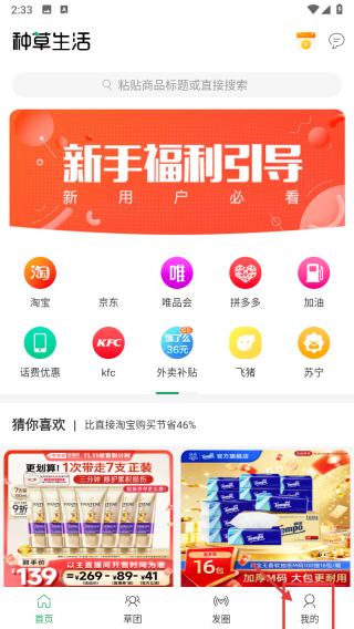 1、打開種草生活應用,點擊底部我的選項,進入個人中心頁面。