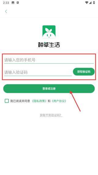 4、輸入手機號和驗證碼,勾選協議后點擊登錄或注冊按鈕,完成賬號登錄。