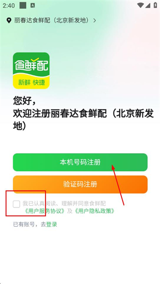 3、在注冊方式選擇頁面,勾選協議后選擇本機號碼注冊,可完成賬號注冊。