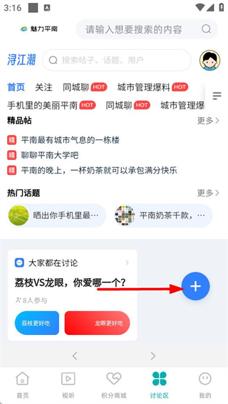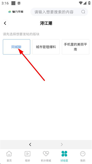 1、在首頁點擊界面下方討論區(qū)按鈕,進(jìn)入討論區(qū)頁面。