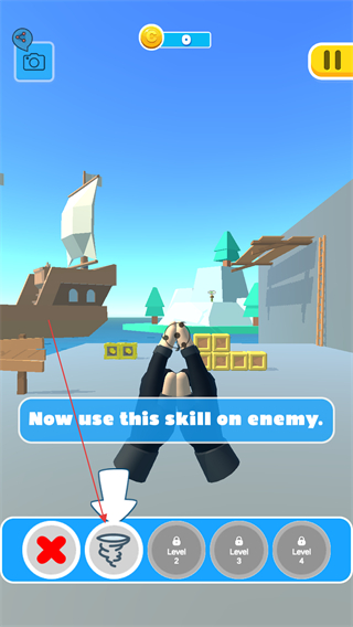 2、進(jìn)入關(guān)卡后,根據(jù)提示點(diǎn)擊風(fēng)系技能圖標(biāo),啟用風(fēng)系忍術(shù)技能。