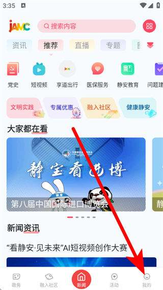 1、打開上海靜安,點(diǎn)擊底部我的,進(jìn)入個(gè)人中心頁面。