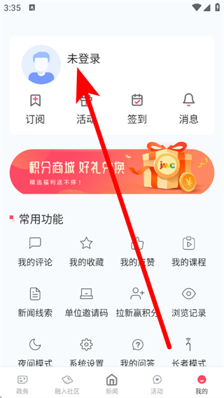 2、在個(gè)人中心頁面,點(diǎn)擊未登錄,進(jìn)入登錄流程。