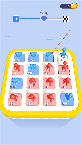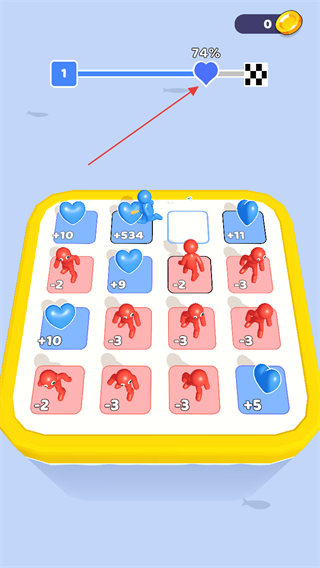 2、選擇藍色愛心區(qū)域可以收獲相應數(shù)量的愛心值,增長上方的進度條,當進度到終點時即為勝利。