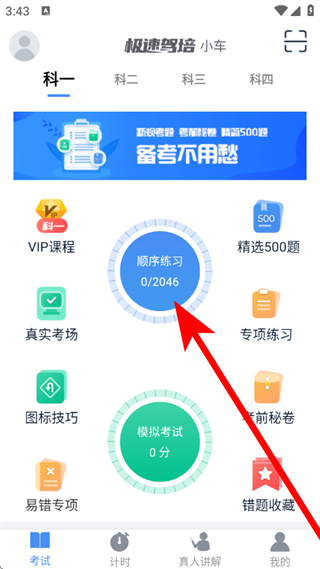 1、打開極速駕培,點擊順序練習(xí),開始刷題。