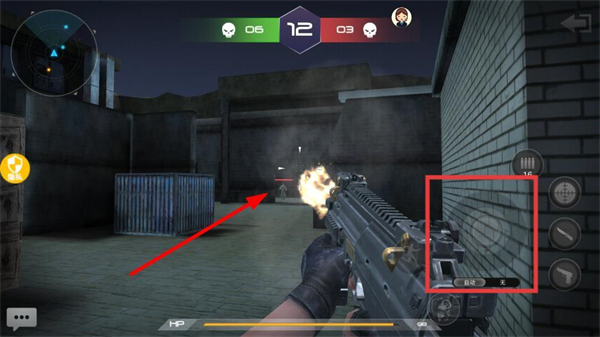 2、右側(cè)射擊區(qū)域控制開火,遭遇敵方時需快速瞄準(zhǔn)射擊,優(yōu)先攻擊暴露的敵人,若自身處于劣勢可退回掩體后,待時機(jī)合適再探頭反擊。