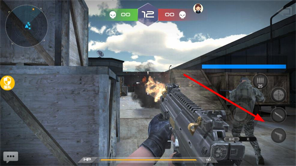 3、武器切換按鈕可根據(jù)戰(zhàn)況更換武器,步槍適合中距離持續(xù)輸出,狙擊槍適合遠(yuǎn)距離精準(zhǔn)打擊,近戰(zhàn)可切換手槍或刀具。
