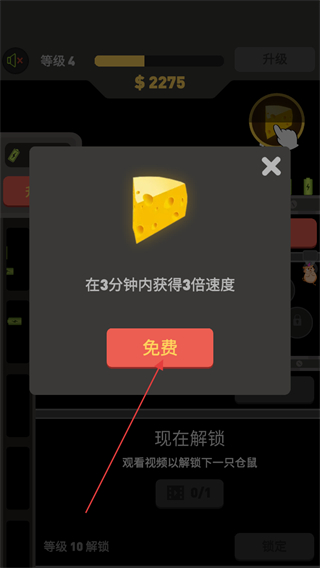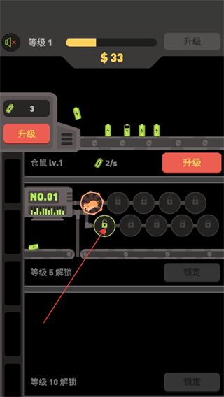 3、通過一段時間的積累當(dāng)上方等級經(jīng)驗條滿之后,可以點擊右上角的升級按鈕提升等級以解鎖更強的倉鼠。