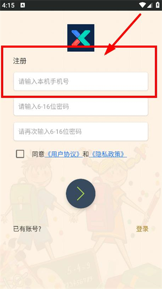 3、在注冊(cè)頁(yè)面,輸入本機(jī)手機(jī)號(hào),來(lái)進(jìn)行下一步。