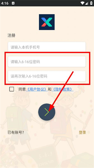 4、設(shè)置好密碼并再次確認(rèn),點(diǎn)擊注冊(cè)的按鈕,完成注冊(cè)操作。