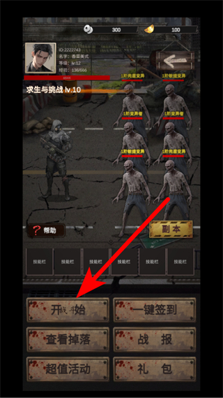 2、在戰(zhàn)斗場(chǎng)景中,點(diǎn)擊開(kāi)始戰(zhàn)斗,即可開(kāi)啟與喪尸的戰(zhàn)斗。
