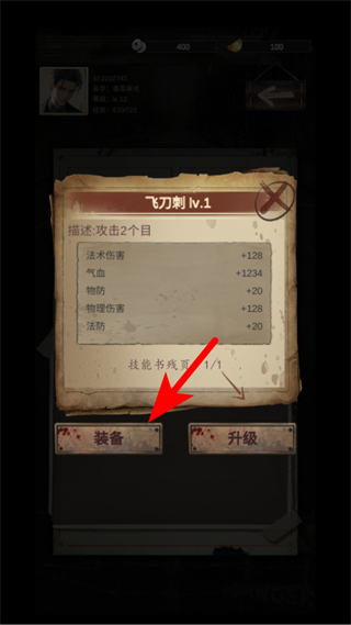 4、獲得技能書(shū)后,可點(diǎn)擊裝備按鈕,裝備技能以增強(qiáng)角色能力,助力后續(xù)戰(zhàn)斗與探索。