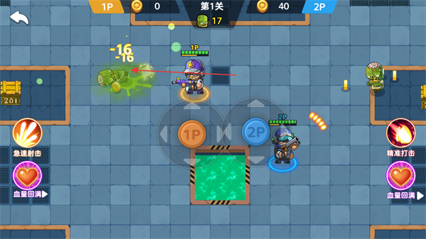 4、兩人協(xié)同作戰(zhàn),互相配合清理僵尸,積累金幣,成功消滅所有僵尸后即可通關,解鎖新的關卡和內容。