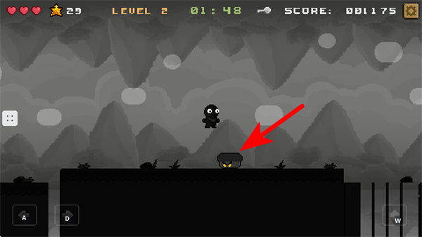 2、在關(guān)卡中遇到帶有黃色眼睛的黑色敵人時(shí),需通過靈活走位躲避其攻擊,避免受到傷害,保障角色安全推進(jìn)關(guān)卡。