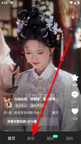 2、在劇場頁面,點擊選擇喜歡的短劇,進入播放頁面。