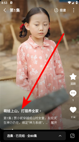 3、在播放頁,點擊短劇標題區(qū)域,進入詳情頁面。