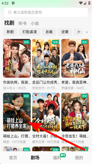 1、打開木葉免費短劇,點擊底部劇場,進入短劇分類頁面。