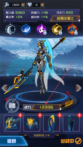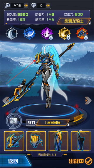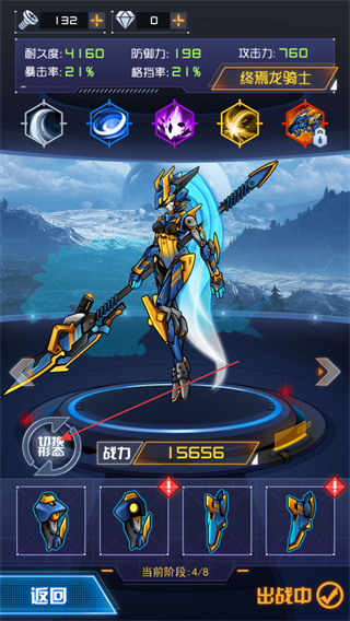 4、點(diǎn)擊機(jī)甲左下角的切換形態(tài)按鈕,可以查看機(jī)甲的龍形態(tài)并進(jìn)行部件組裝。