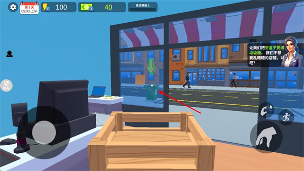 3、蘋(píng)果放置完畢后,將空木箱移動(dòng)至垃圾桶處并扔進(jìn)垃圾桶。
