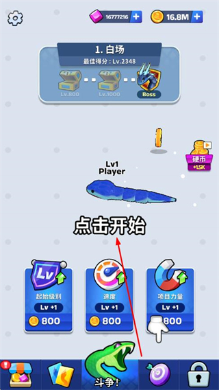1、點(diǎn)擊開始進(jìn)入游戲場景,開啟跟其他蛇的競爭之旅。