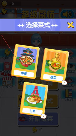 1、進入關卡后,從中餐、泰菜、日料等菜系中選擇其一,確定本次烹飪的菜系方向。